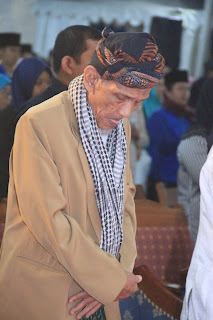 | KH Ridwan Sururi menunduk takzim saat gema salawat dilantunkan, Sabtu (15/4/2017) |