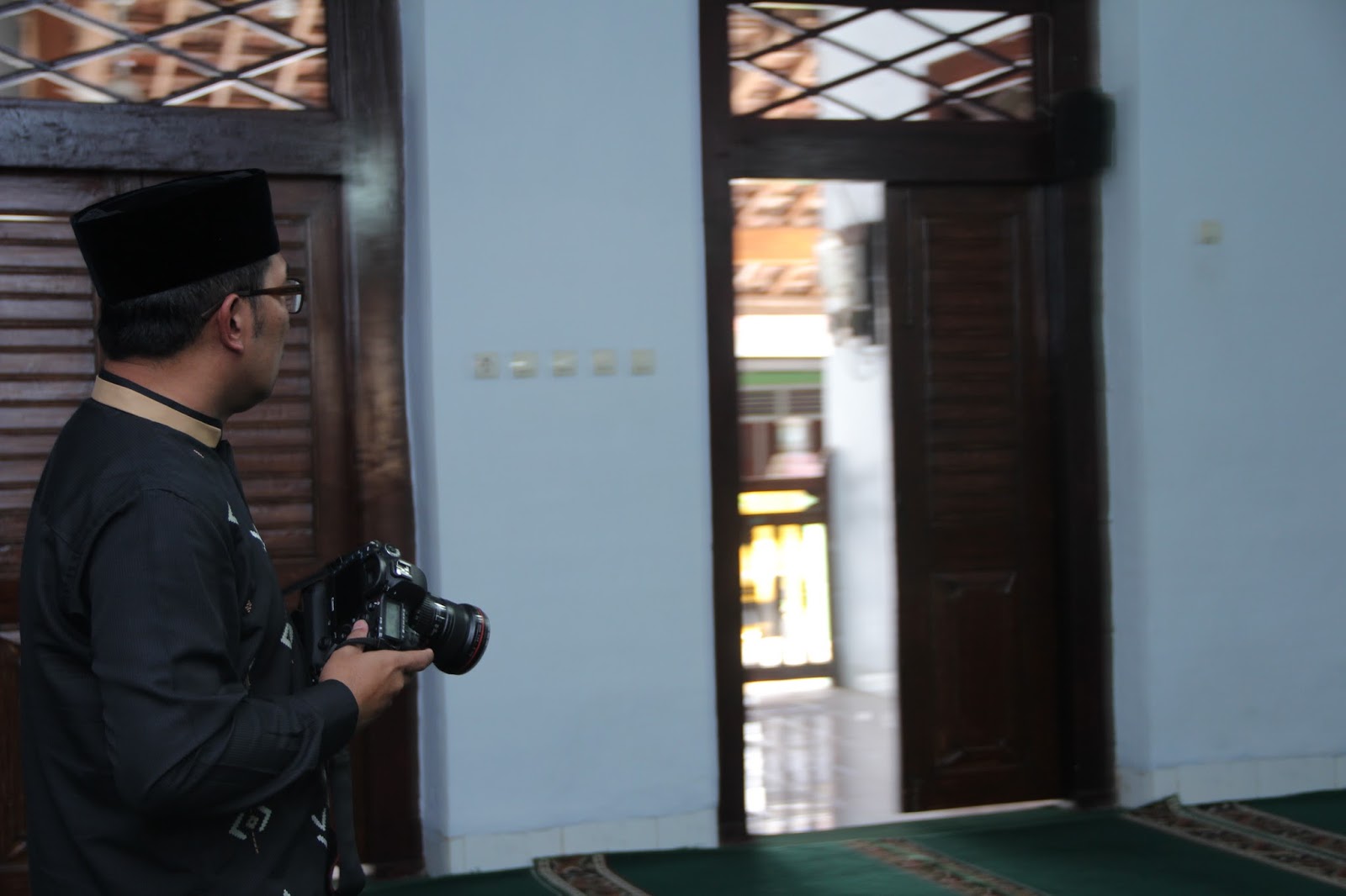 Usai melaksanakan sholat berjamaah bersama rombongannya, Kang Emil tiba-tiba meminta kamera kepada salah satu rombongannya, untuk mengambil gambar masjid. Menurutanya, arsitektur Masjid Buntet Pesantren sangat unik. Bahkan dirinya mengaku belum pernah melihat masjid seperti ini.